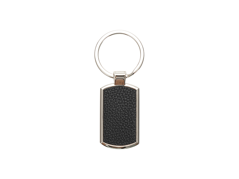 Item Name: Engraving Blanks Metal Keyring w/ Engravable Leather (RND Corner Rect, Black)