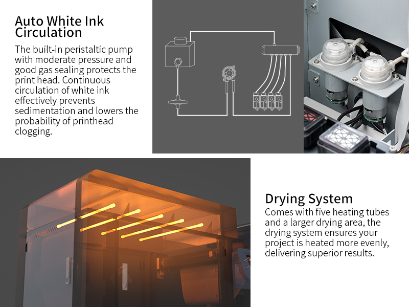 Ideal para producción a gran escala o impresión de pequeño volumen. Perfecto para minoristas o amas de casa, integra funciones de impresión, agitación de polvo, calefacción y purificación, brindando eficiencia y calidad en un diseño compacto. Las funciones totalmente automatizadas mejoran el flujo de trabajo y garantizan una alta