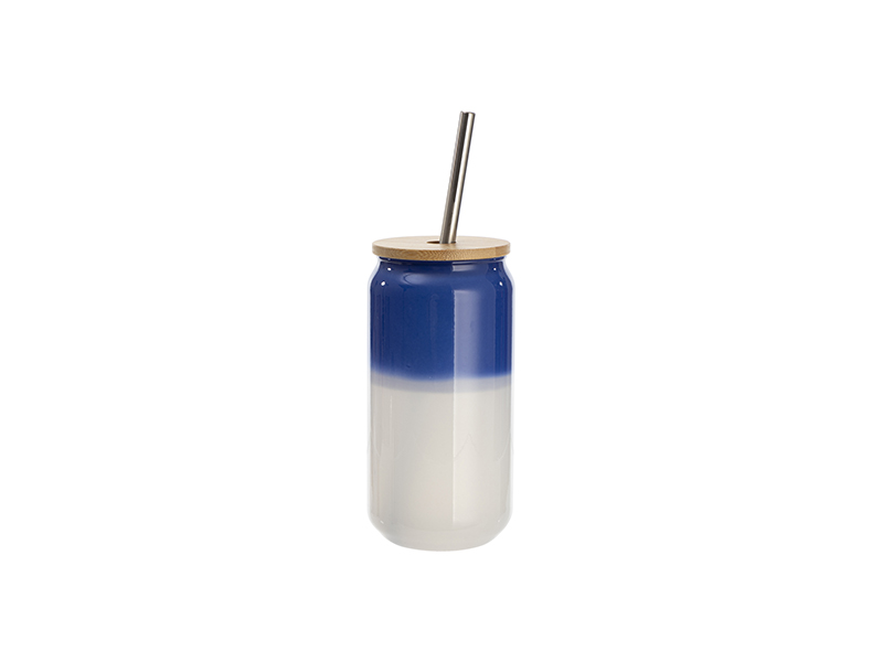 Nombre del artículo: Vaso Mágico (Calor) de Cristal en Forma de lata 18oz/550ml con tapa de bambú (Azul)