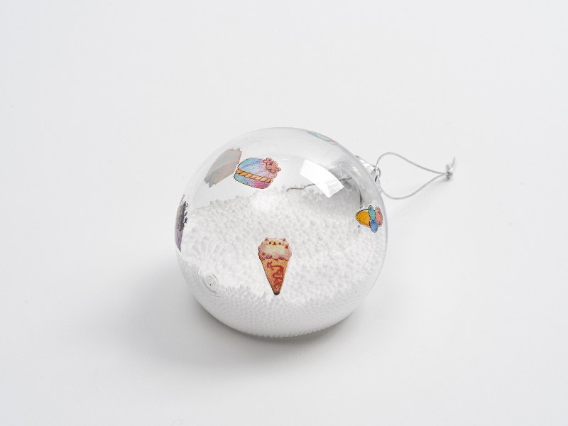 Item Name: 8cm Plastic Patterned Christmas Ball Ornament w/ String(Clear, Cartoon)