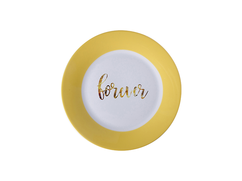 Item Name: Sublimation 8" Rim Plate w/ Yellow Edge