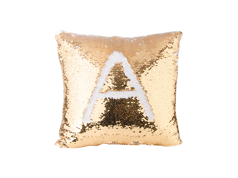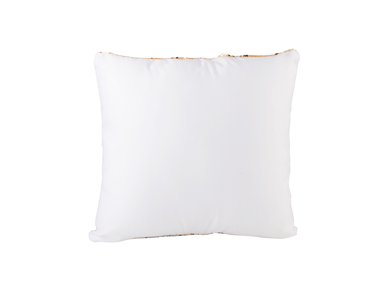 As Lantejoulas têm duas cores. A parte traseira da almofada é de poliéster branco para personalização.
