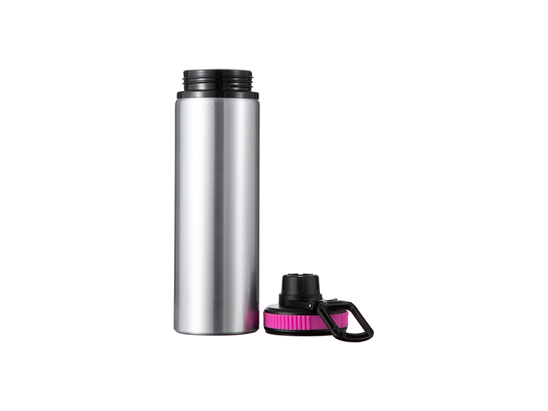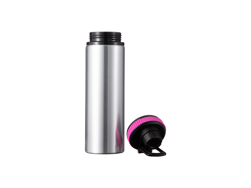 Garrafa Alumínio 25OZ/850ml Tampa Fúcsia (Prateado)