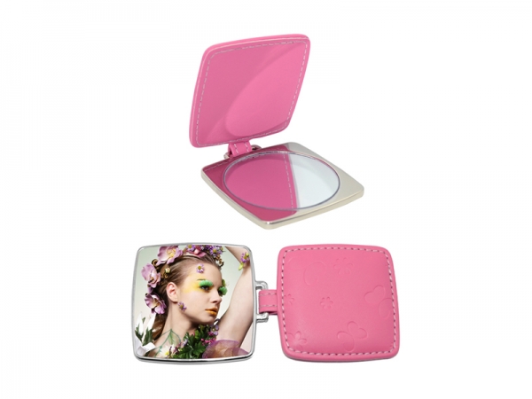 Espelho Quadrado Portátil com Capa de Couro