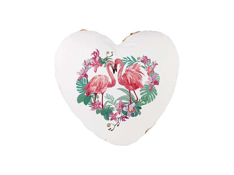 As Lantejoulas têm duas cores. A parte traseira da almofada é de poliéster branco para personalização.
