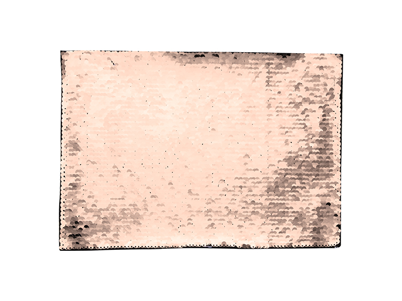Material: Lentejoulas Cor ida Champagne e branco para personalizar. Atrás, poliéster preto com cola.