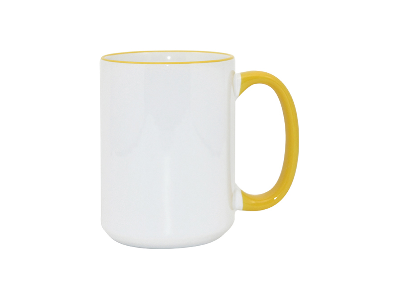 Item Name: Sublimation 15oz Rim/Handle Mugs - Yellow