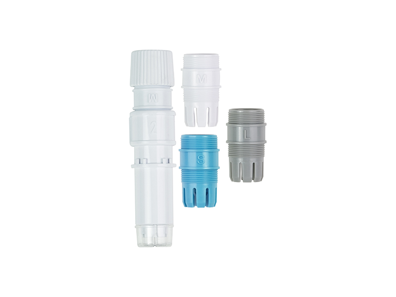 3 threaded adapters (collets) for varying pen sizes—small (blue), medium (white), and large (grey)