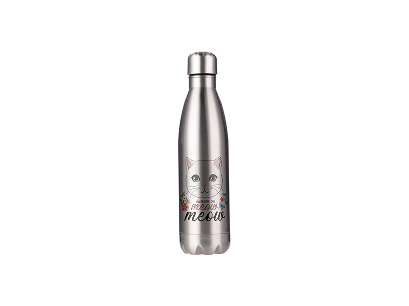 Item Name: Sublimation Blanks 17oz/500ml Stainless Steel Cola Shaped Bottle(Silver) W/ Temperature Lid