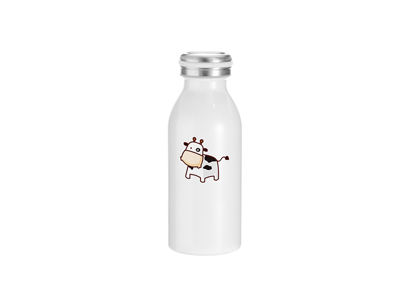 Milk bottle, made of stainless steel, white, 12oz/350ml, 7*17.5cm, well coated. You can imprint it with your favorite image by sublimation printing or laser printing.