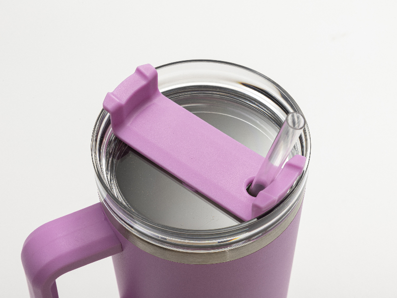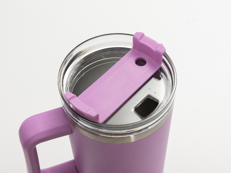 Material: Stainless steel, with purple swivel lid and plastic straw, double wall, vacuumed