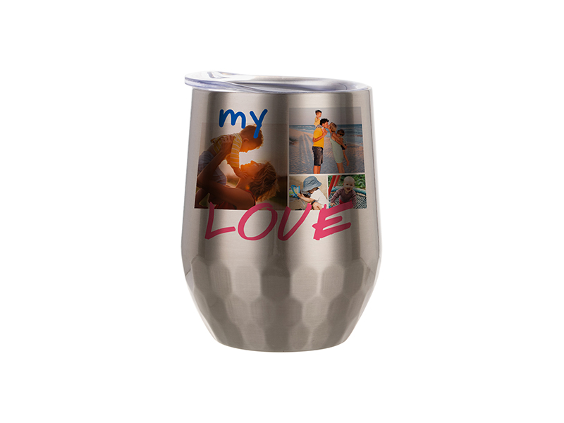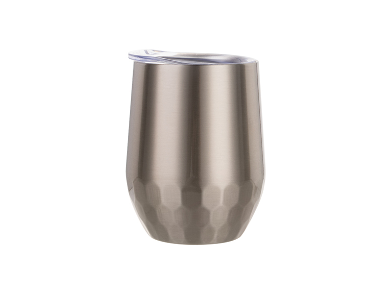 Item Name: Sublimation 12oz Stainless Steel Stemless Wine Cup (Silver, Hexagon Pattern)