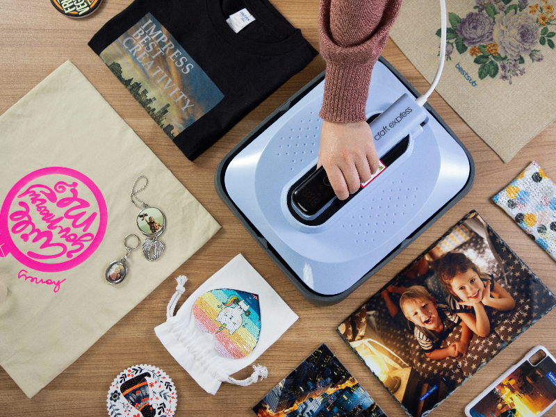 Made in two portable sizes and baby blue color, these machine are ideal for users with limited space, bringing on a touch of elegance and brightness! And after simple parameter settings, you can quickly start your home business, transfer images, vinyls and stickers on T-shirts, bags, pouches and print ceramic tiles, slates, aluminum boards to make customized decors.