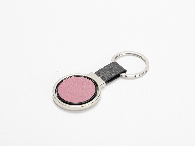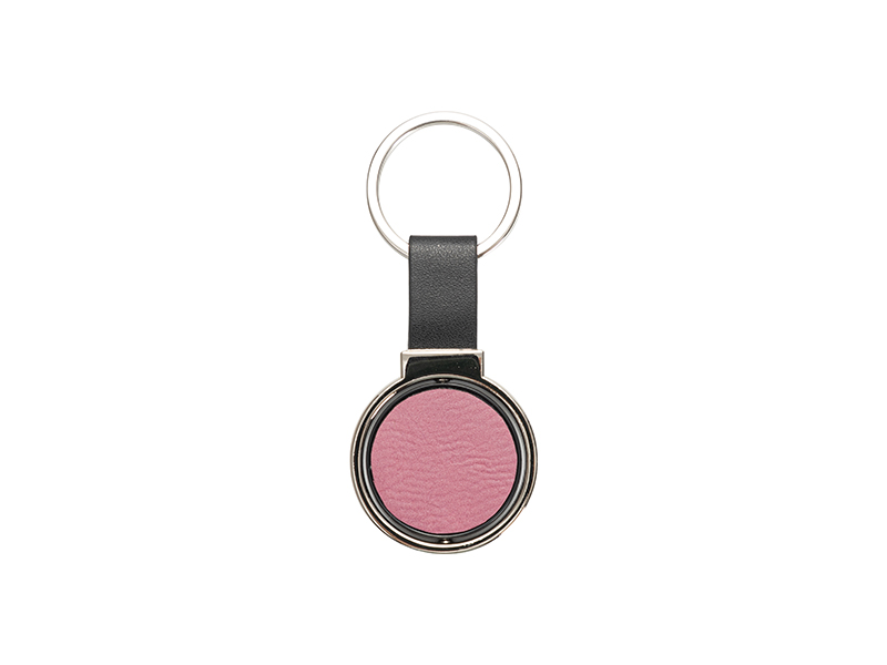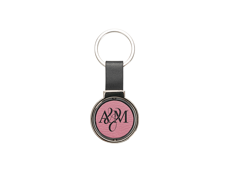 Item Name: Engraving Blanks Metal Keyring w/ Engravable Leather (Round, Pink)