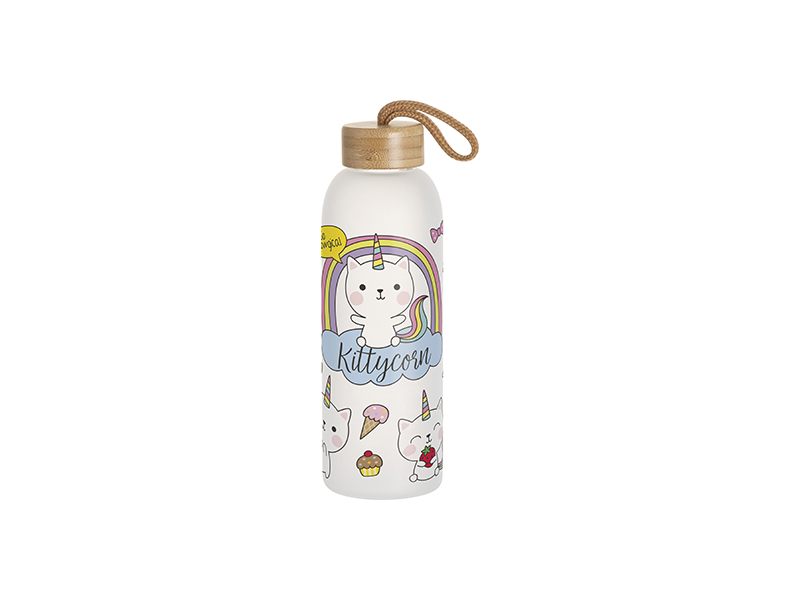 Botella de Cristal Escarchado 25oz/750ml con tapa de bambú