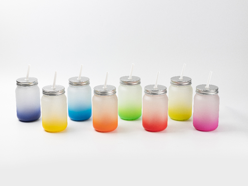 Item Name: 15oz/450ml Sublimation Blanks Mason Jar No Handle (Frosted, Gradient Color)