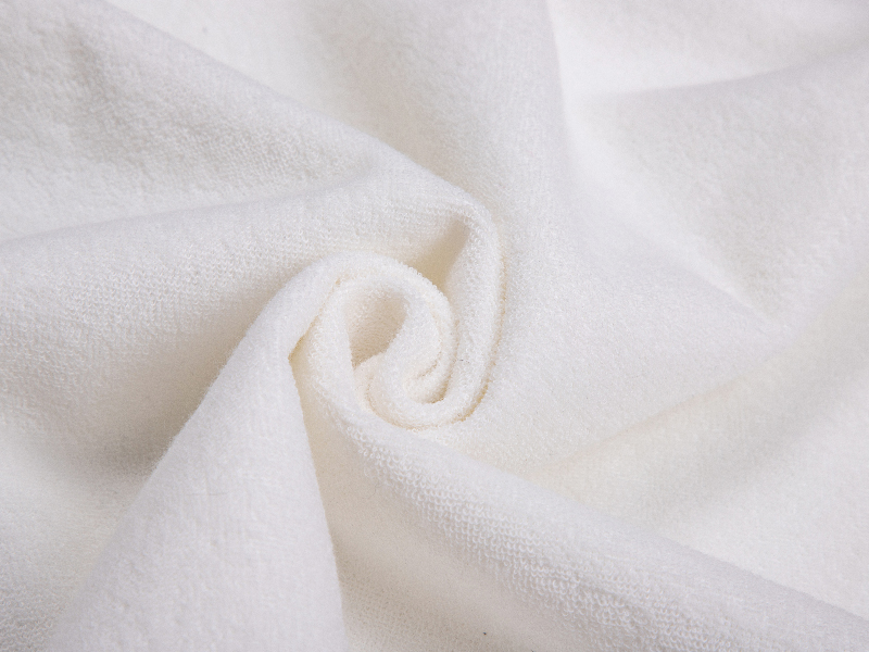Material: 180 gsm white crystal super-soft fabric laminated with 200 gsm 100% cotton terry loop fabric
