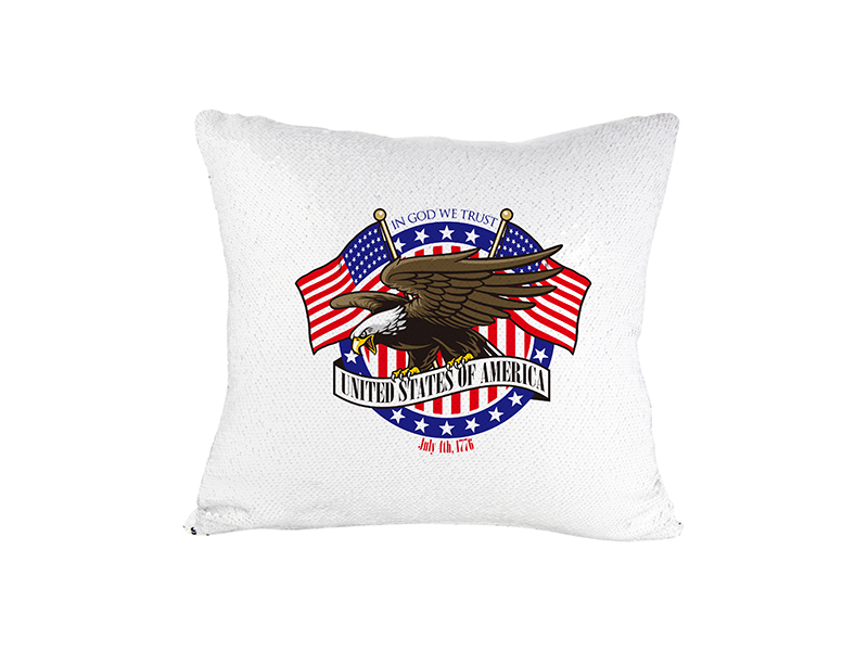 As lentejoulas são brancas de um lado e prateadas do outro. A traseira do estojo é de poliéster branco para sublimação.