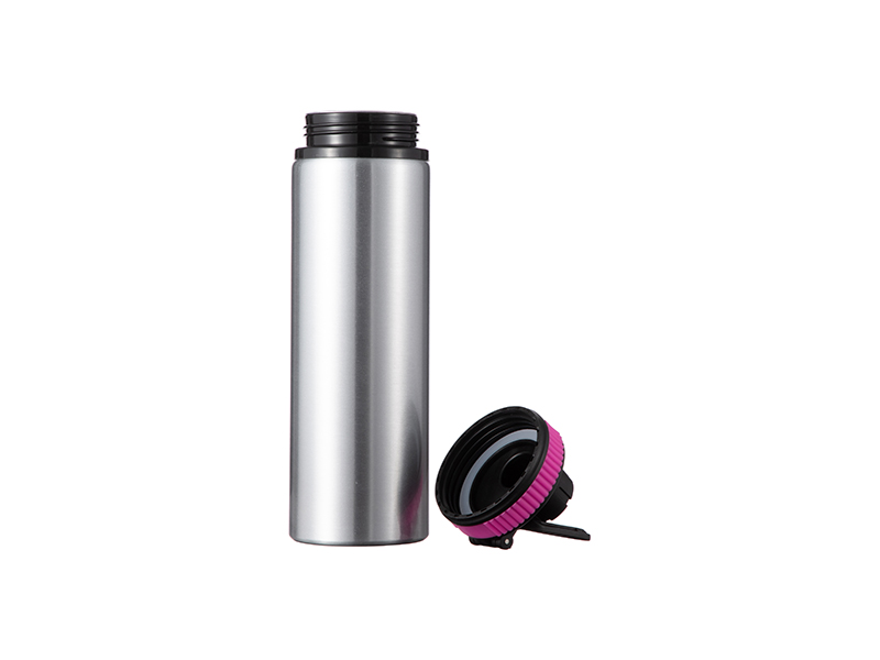 Garrafa Alumínio 25OZ/850ml Tampa Fúcsia (Prateado)