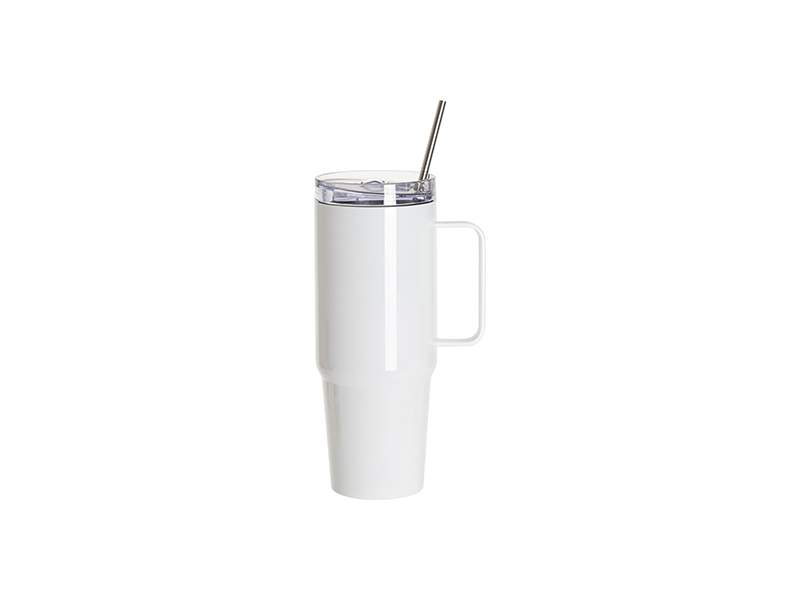 Item Name: 30oz/900ml Stainless Steel Handled Travel Tumbler with Lid & Straw (White)