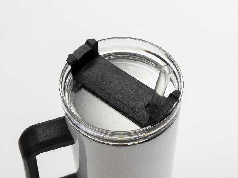 Material: Stainless steel, with black gray swivel lid and plastic straw, black handle, vacuumed