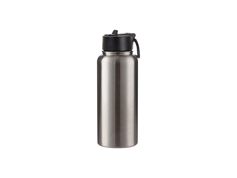Item Name: Engraving Blanks 32oz/950ml Powder Coated SS Flask w/ Wide Mouth Straw Lid & Rotating Handle