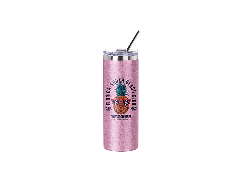 Item Name: Sublimation 20oz/600ml Glitter Stainless Steel Skinny T Tumbler with Straw & Lid (Pink)