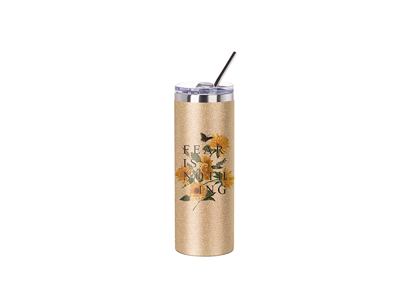 Item Name: Sublimation 20oz/600ml Glitter Stainless Steel Skinny Tumbler with Straw & Lid (Gold)